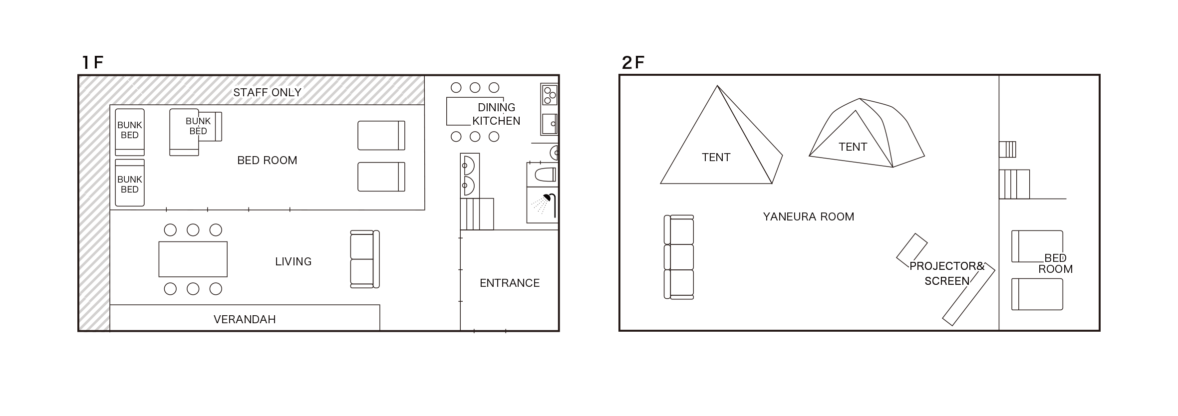 寝室は2部屋ございますので、2家族でのご宿泊にもおすすめです。